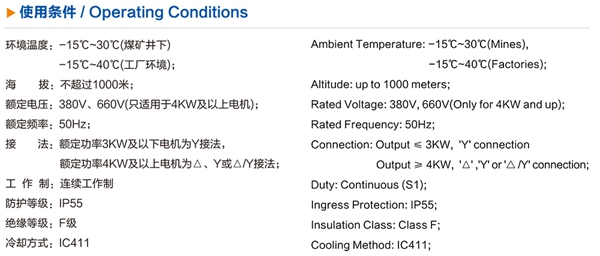 YBF2系列风机用隔爆型三相异步电动机是为配套隔爆型通风机而设计制造,主要为煤矿、石油、化工等需要防爆的行业提供先进、安全、可靠的通风动力设备。该电机具有安全性高、运行可靠、体积小、噪音低等优点。我公司已取得了防爆合格证、生产许可证(XK06-014-00901)、矿用产品标志证书(MA/KA)。 YBF2系列电机防爆性能符合GB3836.1-2010 《爆炸性气体环境用电气设备第1部分:通用要求》和GB3836.2-2010 《爆炸性气体环境用电气设备第2部分:隔爆型“d"》的规定,亦符合IEC60079-0、IEC60079-1的规定。电机的安装方式、安装尺寸、技术参数与要求等符合JB/T7565.5-2004 《隔爆型三相异步电动机技术条件第5部分:YBF2系列风机用隔爆型三相异步电动机(机座号63-355)》的规定。 YBF2系列电机防爆标志分为:Exd I、ExdII AT4和ExdIIBT4,其中Exd I适用于有甲烷或煤尘爆炸性气体混合物存在的煤矿工作面环境;Exd II AT4和Exd II BT4适用于工厂用类A级、B级,温度组别为T1, T2, T3和T4组的爆炸性气体混合物存在的环境。